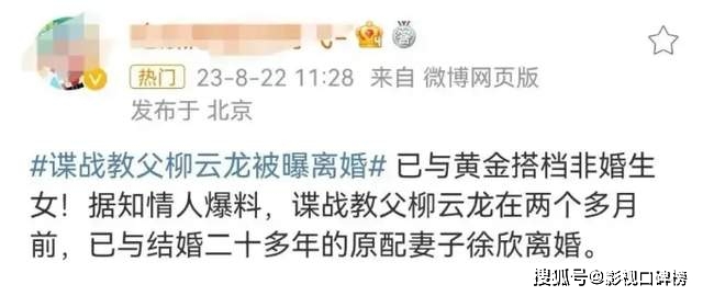 最近柳云龙被曝离婚,他与原配是大学时相恋,如今已经是20多年的夫妻了。离婚的原因是柳云龙婚内出轨合作伙伴杨健,并生下2人的女儿。据说,杨健北大毕业的才女,与柳云龙搭档很默契。究竟孰真孰假,柳云龙没有回应,作为外界不置评价。