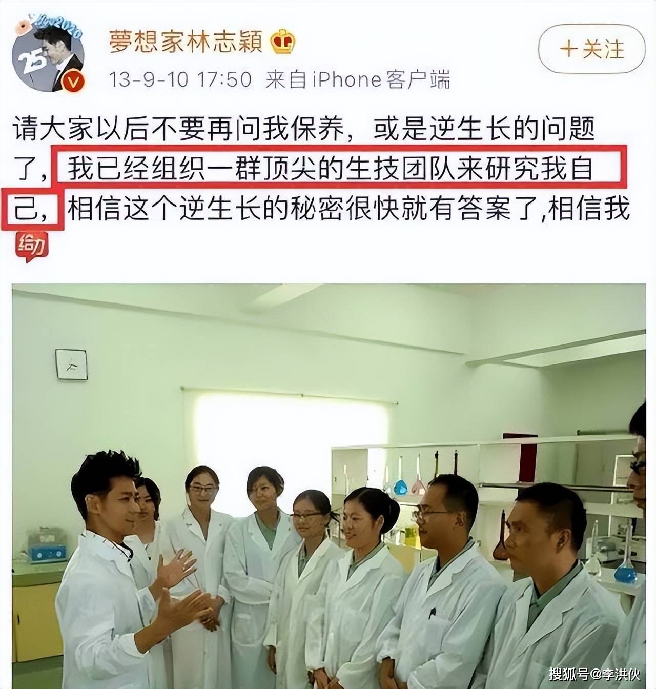 对此,林志颖也调皮了一下,发博说:我已经组织了一群顶尖的生技团队来研究我自己,相信这个逆生长的秘密很快就有答案了……