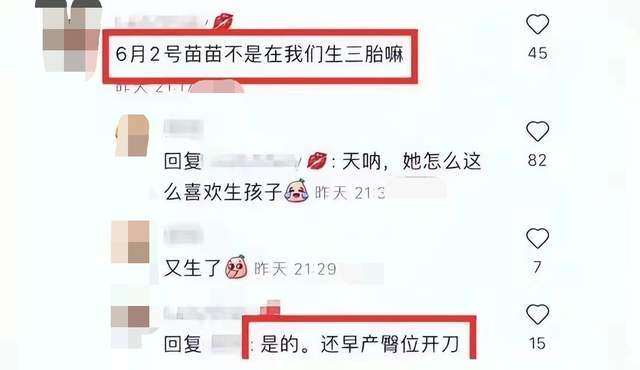 6月份的时候,还有网友曝料苗苗生了三胎,但是两人对此选择了沉默。
