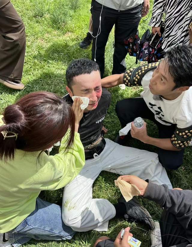 而且尼格买提受伤的部位还是面部,从传出的照片来看,尼格买提的半张脸都已经红肿了,工作人员用湿巾帮他擦拭,而一起参加节目的撒贝宁在一旁照顾尼格买提。