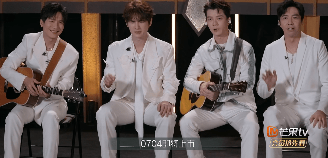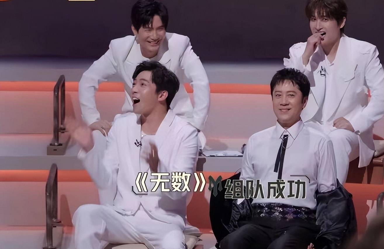 接下来,42岁的09号选手陈楚生,38岁的12号选手张远、33岁的02号选手王栎鑫、35岁的04号选手俞灏明,开始一起合唱——“wowowowo——”。