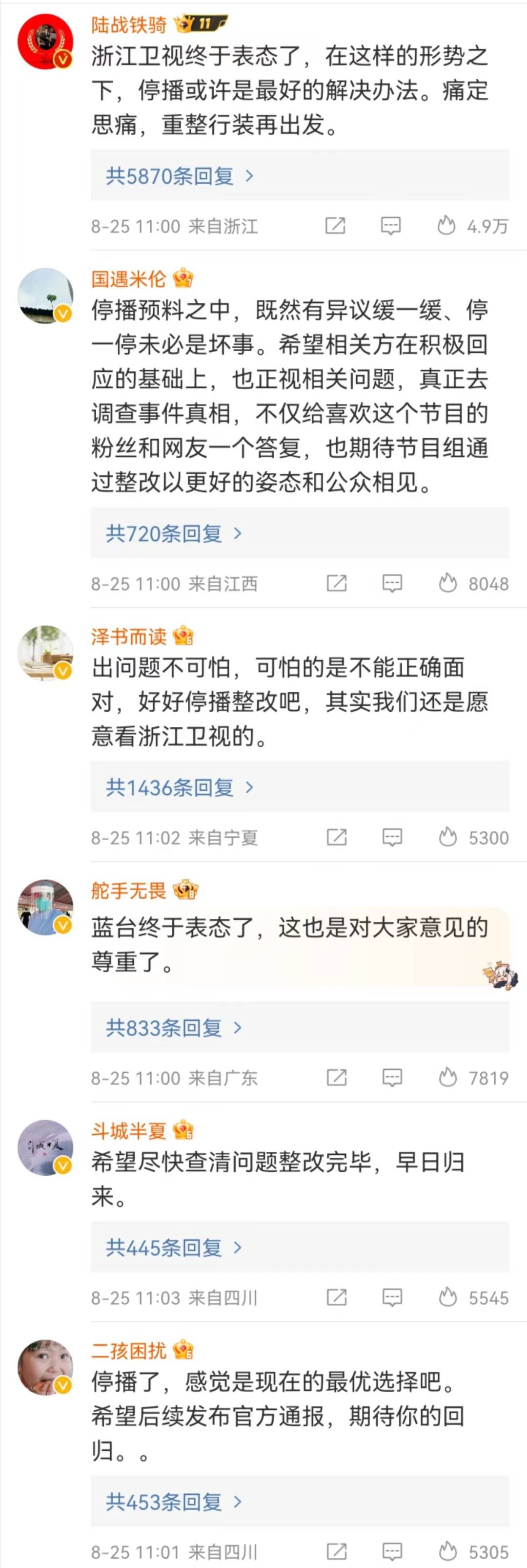 对于节目的停播,一些网友也有自己的疑问,比如说是调查,自己调查自己有什么用处呢?再者也有人呼吁还不如永久停播。