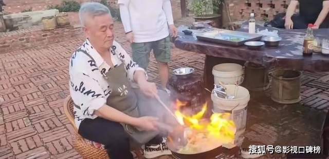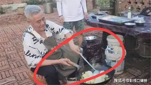 从曝光的画面中看,赵本山坐在一张小椅子上,围着围裙,正在炒菜。