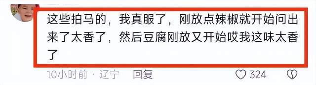 有网友说:这些拍马的,我真服了,刚放点辣椒就开始闻出来太香了,然后豆腐刚放又开始这味太香了。