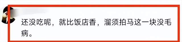 另一位网友说:还没吃呢,就比饭店香,溜须拍马这一块没毛病。