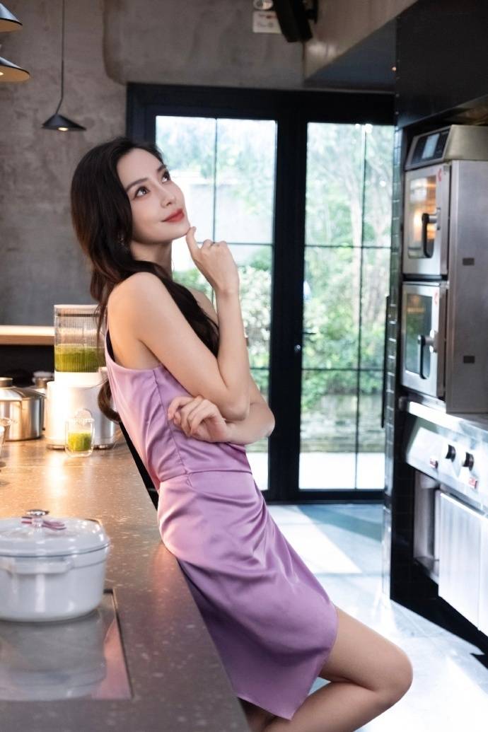 紧接着,她也起身来到了厨房,将身体靠在了吧台上,似乎在幻想着自己展示厨艺的高光时刻了。此时也可以看到她的五官依旧十分的精致,下颚线立体分明,身材更是窈窕迷人,一双白皙纤细的大长腿也特别的抢镜了。