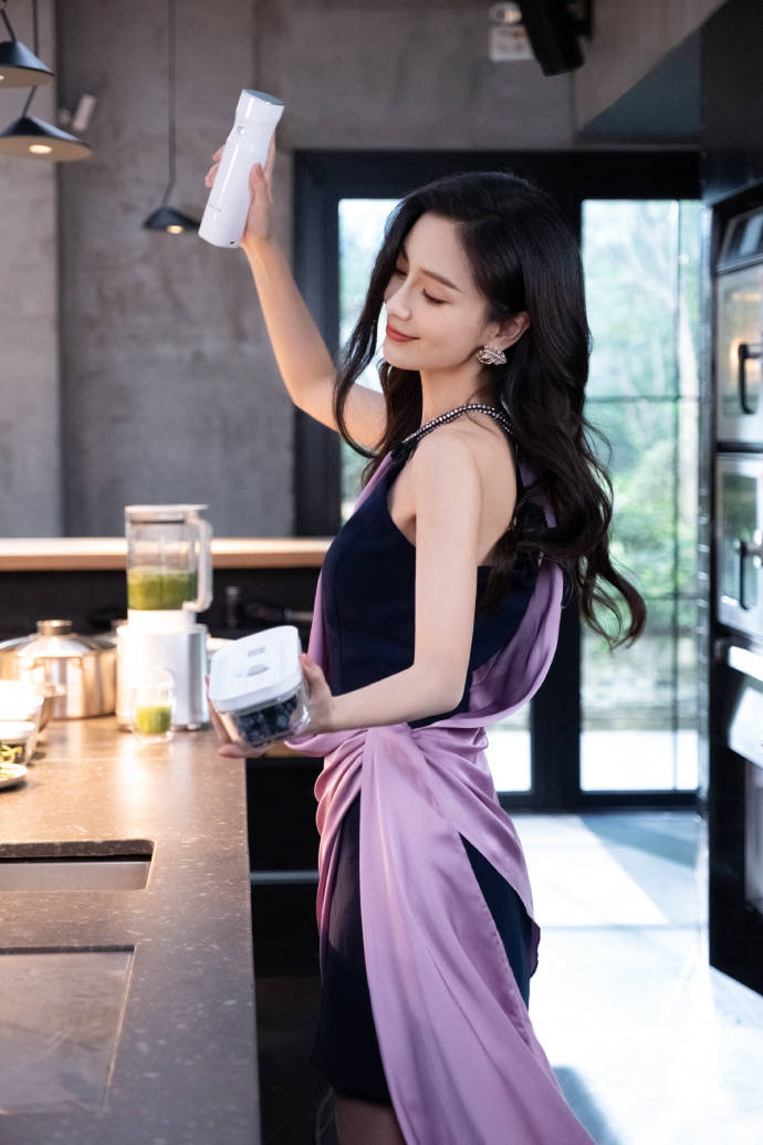 画面中的Angelababy穿着黑色和紫色拼接的长裙,依旧将时尚的魅力展现得淋漓尽致了。她一头柔顺的波浪长发披肩,脸上也化着十分精致的妆容,看上去也显得特别的清纯可人。