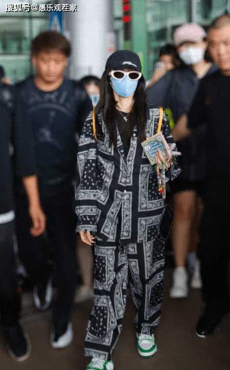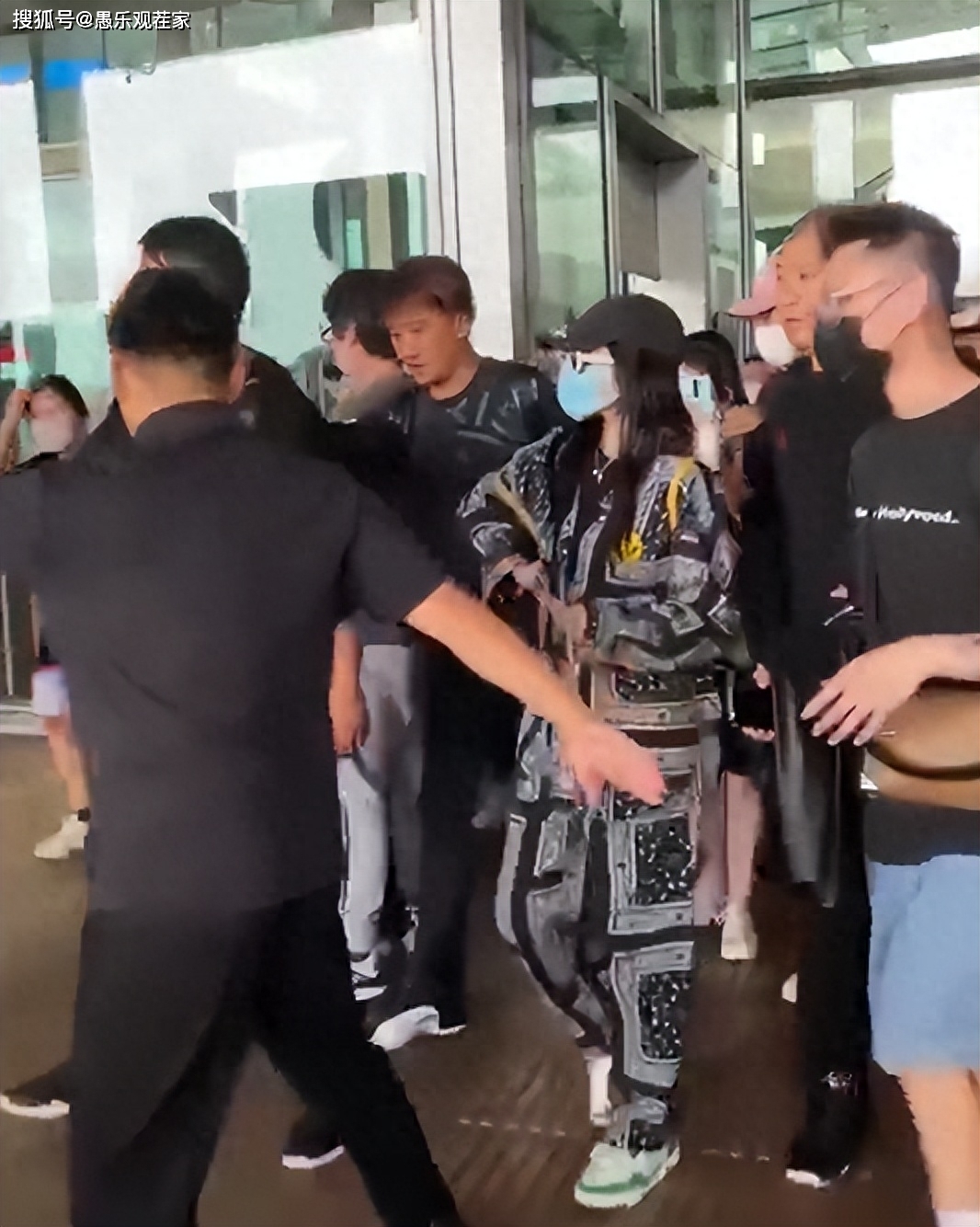 站在保安身旁的萧亚轩,身材更显娇小,身穿一身碎花休闲装的她,帽子墨镜口罩一个不落,让人无法看到她的面部状态。