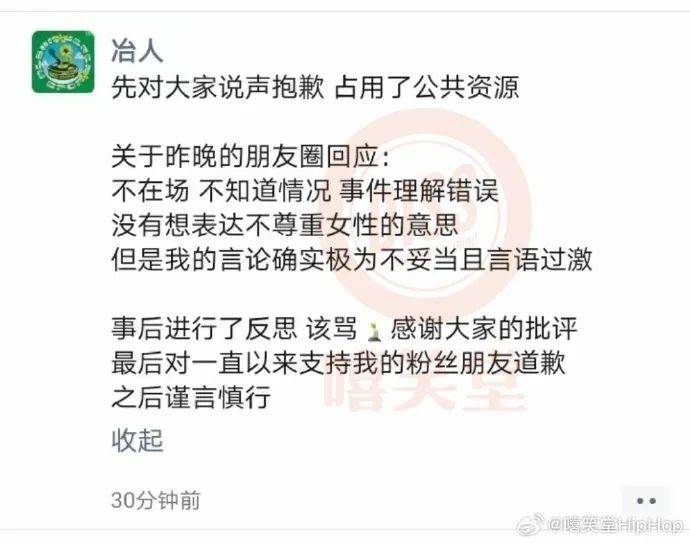 比如第一时间出来跳脚的rapper冶人,就贡献了第一波的典中典发言。