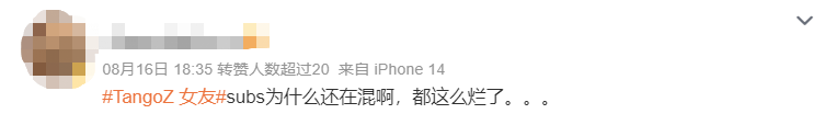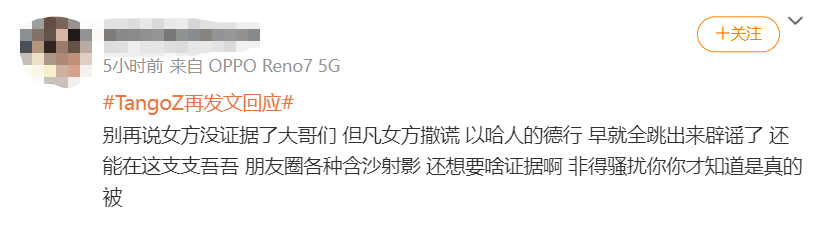 但是这回从TangoZ路人缘全面崩塌的速度就能看得出来,大多数网友还是站在了女生那一边,更相信她说的话,觉得一个女爱豆不太可能无聊到赌上自己未来的事业去污蔑一个圈内大佬。