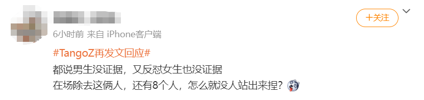 网友们在线疑惑:TangoZ不是说当晚在场的朋友都能给他作证吗?除了他和杜紫怡还有八个人呢,哈圈不是一向都主打一个real兄弟情吗?现在人呢,都不站出来替TangoZ说话是因为不想吗?