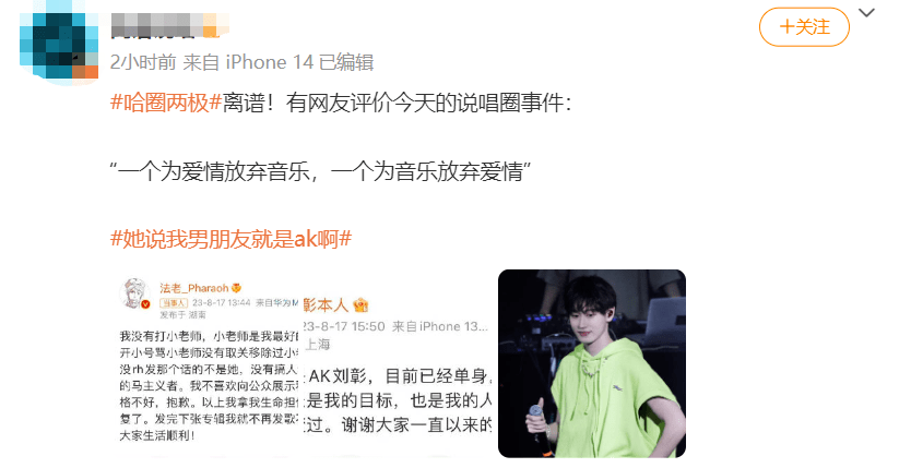 而同样是从《说唱新世代》那档节目出来的AK刘璋,也是这两天站在哈圈地震带上的一部分。