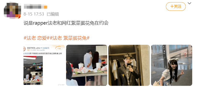 然而这次的哈圈大地震塌着塌着就塌到法老这边了:恋情曝光,嫂子是网红紫菜蛋花兔。