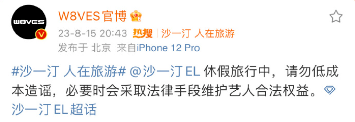沙一汀厂牌那边也火速辟谣,说他正在休假旅行中,勿扰,别乱造谣。