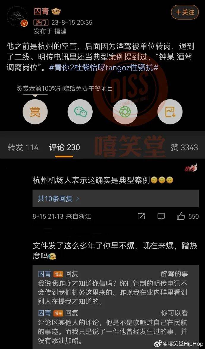 而据一位航空博主透露,TangoZ当时就是因为酒驾这个事被单位转岗退到二线的,而不是像TangoZ自己一直在镜头前立人设说的那样,是自己主动转岗。