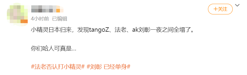 有网友还玩梗说,法老和刘璋,一个为爱放弃音乐,一个为音乐放弃爱情,哈人果然是各有各的炸裂,不好说谁更难评,小精灵日本归来身边朋友都塌完了。