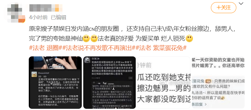 先是有粉丝深扒紫菜蛋花汤的过往,扒出来她有过搞擦边、辱女甚至辱h的黑历史,觉得这个嫂子不行。