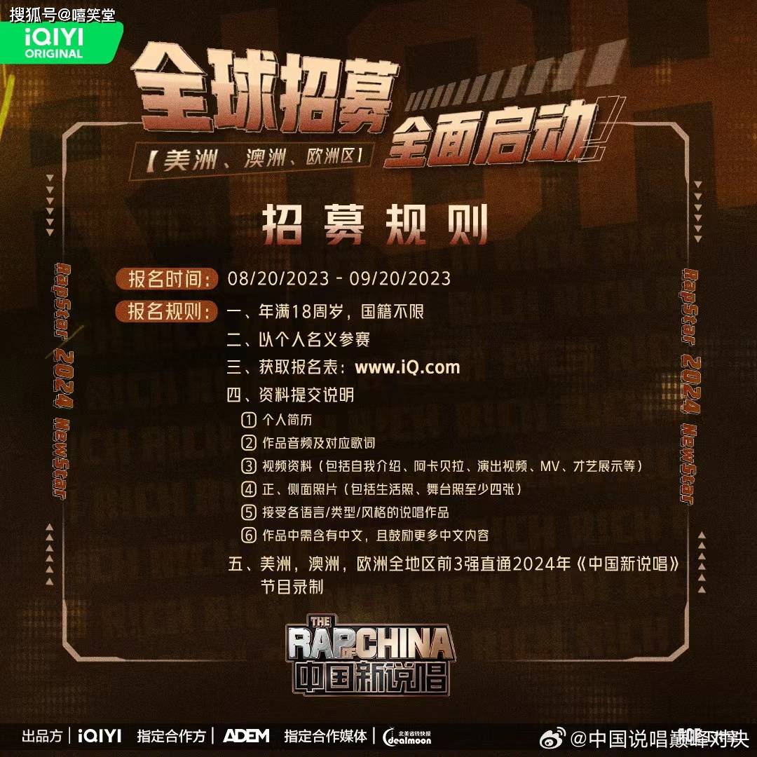 根据节目公布的报名规则,《中国新说唱》招募全世界18岁以上的优秀Rapper。