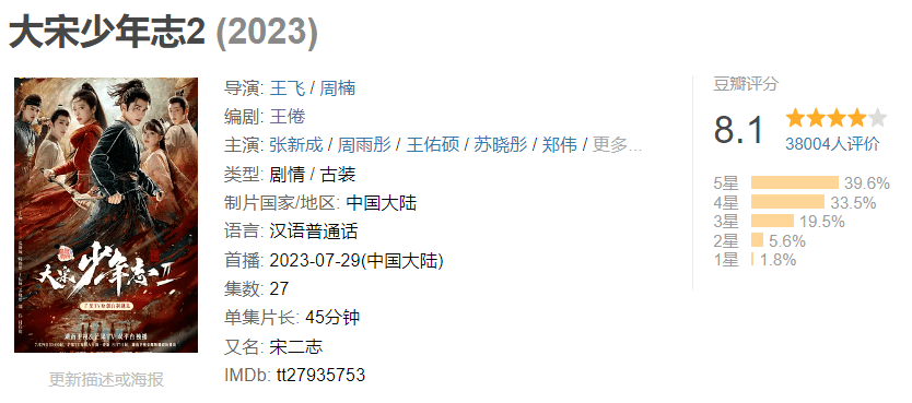 但相对口碑争议较大的《七时吉祥》,或许更值得发问的,是近期收官后豆瓣评分达8.1分(最高8.3分)的《大宋少年志2》,这部口碑之作的续集在今年7月底上线后,整体的反响比较复杂。