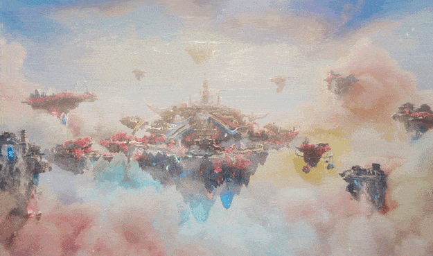 对于天界的视觉建构,剧集主打彩云神话乐园世界观,整体上融合了游乐场的视觉元素,并以中国传统云纹为灵感,如团云纹、如意云纹、云气纹等,呈现出七彩祥云般流光溢彩的云朵环境,过山车、旋转木马等则在云层中若隐若现,云朵还会根据剧情和主角心情变化产生变化,这在国产剧中还属首创。整体来看,天界的视觉打造传递出自在逍遥的环境氛围,充满着东方美学的浪漫幻想,被观众称赞为“菌子特效”“多巴胺仙侠”。