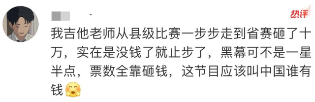 之前参加过好声音苏州赛区的冠军也爆料,说导师转身也是花钱买来的,少则50万,走到省赛都要花十万,实在没钱了就止步了,黑幕不是一星半点,票数全靠砸钱。