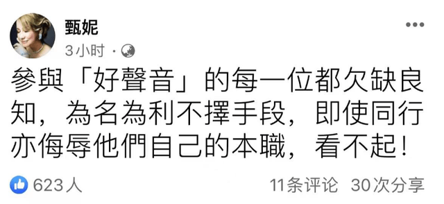 想必今年参加好声音能够上台演唱的学员恐怕大多数都花了钱,还有一部分应该是导演选中的,而参加节目的四位导师难道一点都不知情?还是已接受了节目组的黑幕,配合节目组“演戏”呢?也难怪李玟的好友甄妮愤怒发声,说参与好声音的每一位都欠缺良知,为名利不择手段。