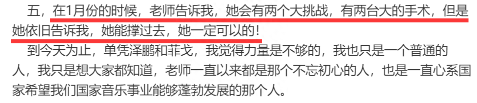 最后杨灿告知,李玟曾在今年1月的时候,告诉她会有两个大挑战,有两台大的手术,但是她很坚强,告诉她能撑过去,她一定可以的。