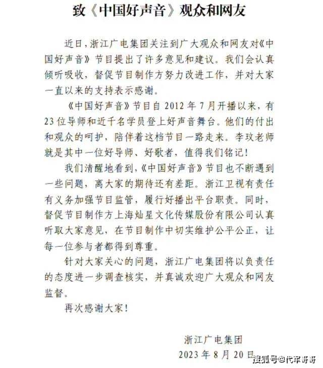 眼看事态一发不可收拾,昨晚浙江广电终于发声回应,称他们也清醒的认知到节目存在的一些问题,他们也会督促制作方在制作过程中切实维护公平公正,让每一位参与者都得到尊重,针对大家提出的质疑,他们也会以负责任的态度进行调查核实。