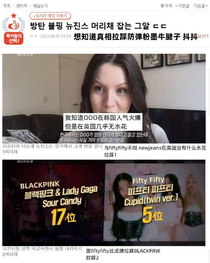特别是对于在播出前就受到关注的部分,并没有排除任何疑点,仅是提到Fifty Fifty的成员受到伤害,节目报道中接连提到防弹少年团(BTS)、BLACKPINK、NewJeans,虽然节目字幕中NewJeans的名字打码了,但是口型可以明显看出说的是NewJeans。