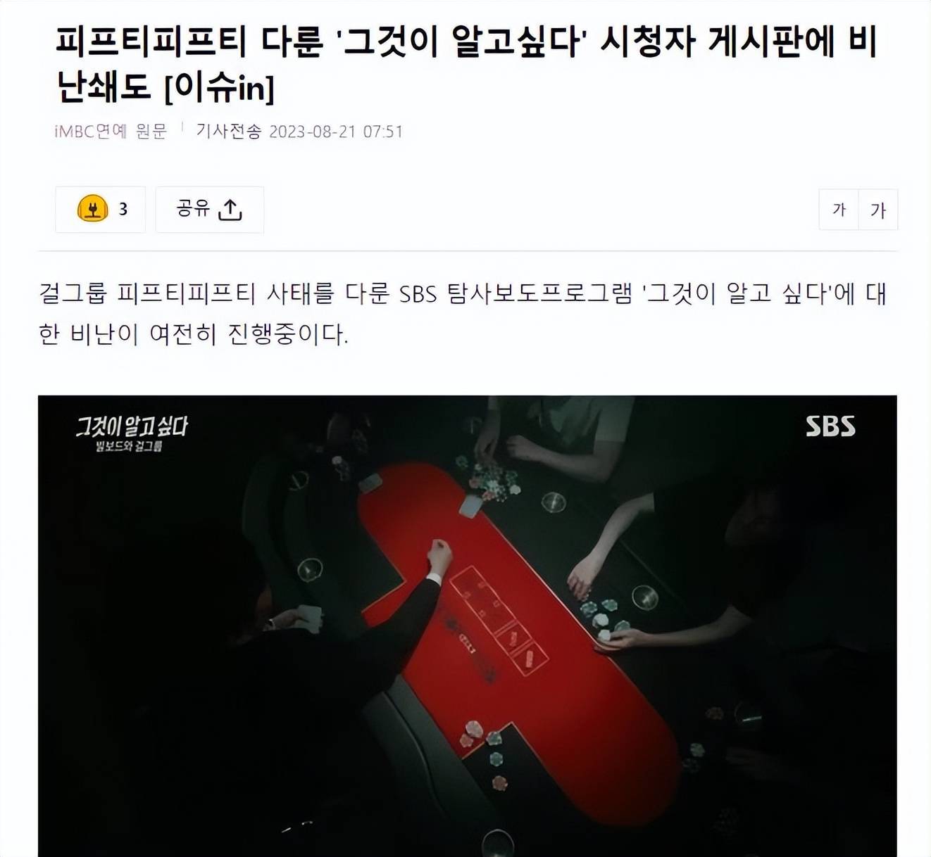 原标题:SBS节目报道引热议,“单方面卖惨偏袒艺人”,韩网友观点一面倒