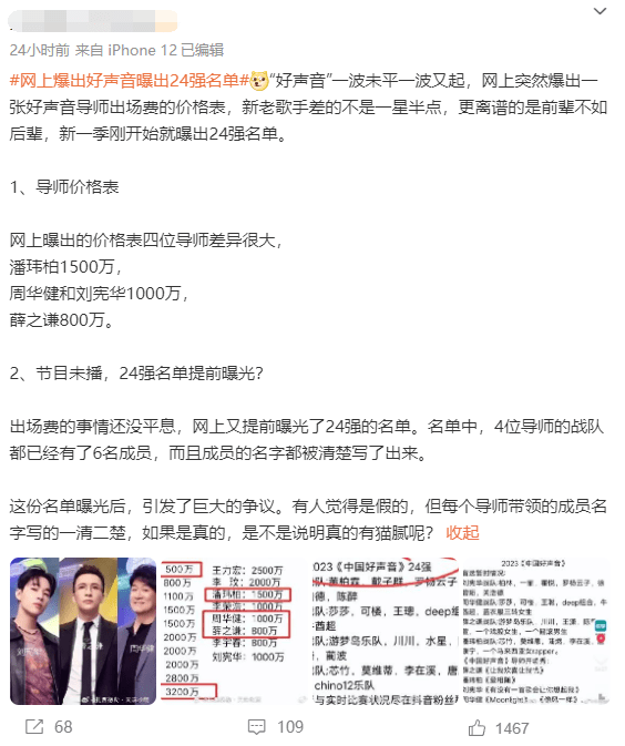 这位网友还曝光24强名单,吸引大量网友在线吃瓜。