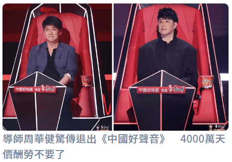 8月20日下午,周华健经纪人接受台媒采访否认退出《中国好声音》:“没有要退出喔~那个是有人po图的网络流言啦。”并表示会继续担任节目导师。