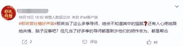 正因为如此,很多网友就将不满情绪全都迁怒到了那英的头上,认为她没有替李玟发声也就罢了,反而助纣为虐去充当好声音的帮凶,任由节目组胡作非为,根本就不配当导师。