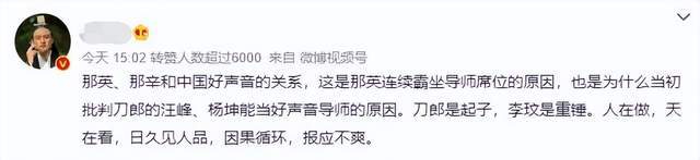 原标题:那英成无辜受气包,刚被刀郎新歌给内涵完,现在又替好声音背黑锅