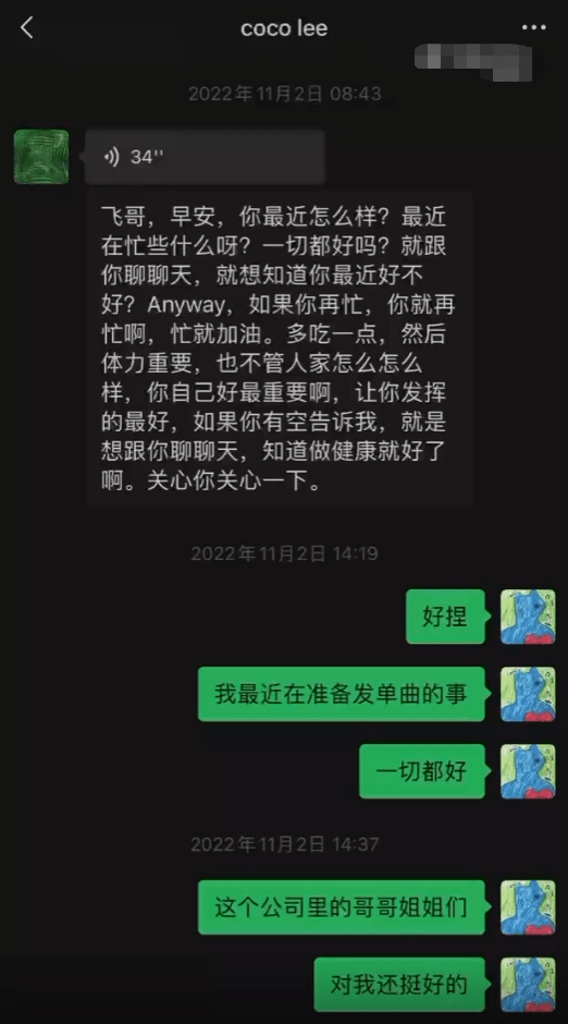 从周菲戈放出来的聊天记录上来看,是李玟主动找周菲戈谈心,对这个曾经被不公平赛制淘汰的学员进行安慰。