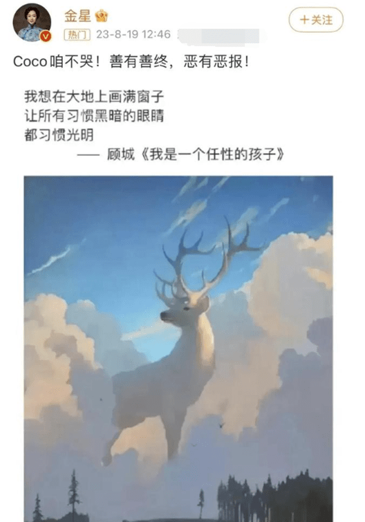 而对于李玟和好声音节目的风波,圈中也有不少明星站出来为其发声,比如金星就为李玟喊话说:coco咱不哭!善有善终,恶有恶报!