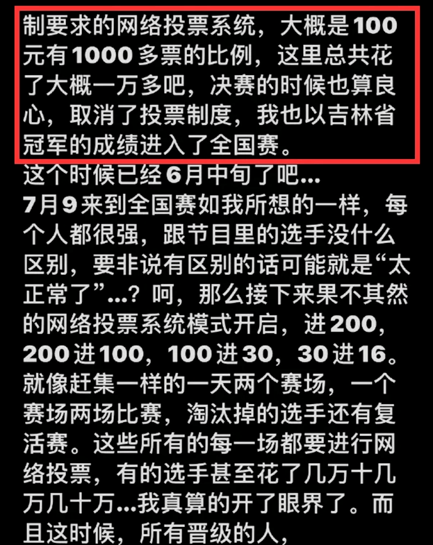 另一位学员杨博然也发声吐槽节目组,称好声音强制投票,他在最初比赛时就花了1万多来投票。