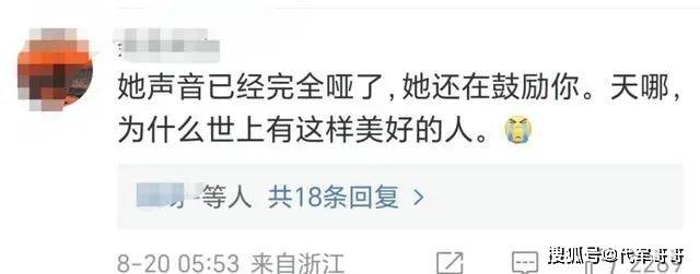 “她声音已经完全哑了,她还在鼓励你。天哪,为什么世上有这样美好的人。”