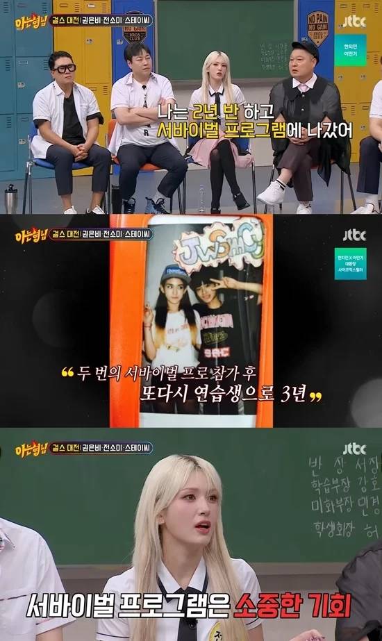 当天的节目中,嘉宾们被问到了各自的练习生生活,全昭弥说道,“当了两年半的练习生后,我参加了生存项目,我出去两次,又回到公司,实习生生活了三年”。