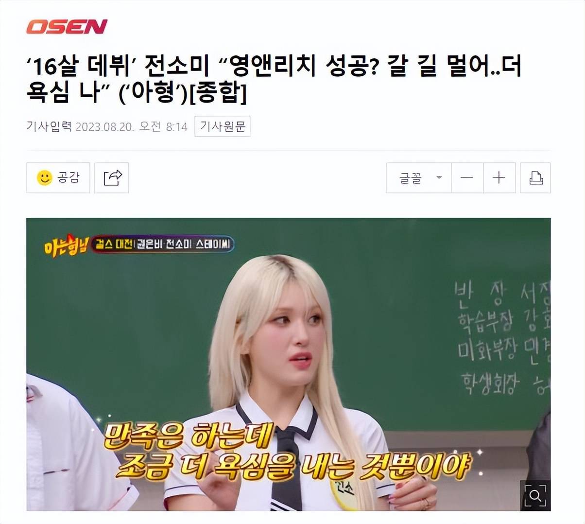 20日,有韩国媒体报道,在综艺节目《认识的哥哥》中,somi全昭弥提到了她漫长的练习生生活,16岁出道后,成为年轻而富有的成功者,自己变得有点贪心了,其实还有很长的路要走。