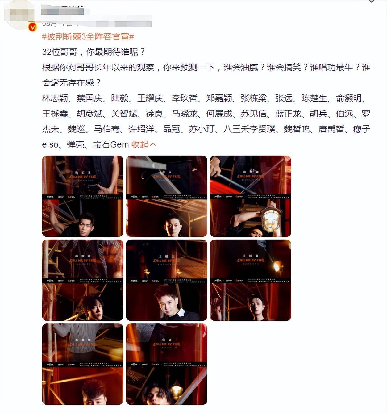 等到节目组放出了参赛名单,大家这才知道MV里都有谁在COS“盲人”了。
