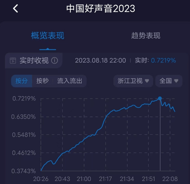 实际上,近些年《好声音》口碑已经有明显下跌了,2022年《好声音》收视还有0.75%,2023年《好声音》播出至今最高收视不过0.65%。