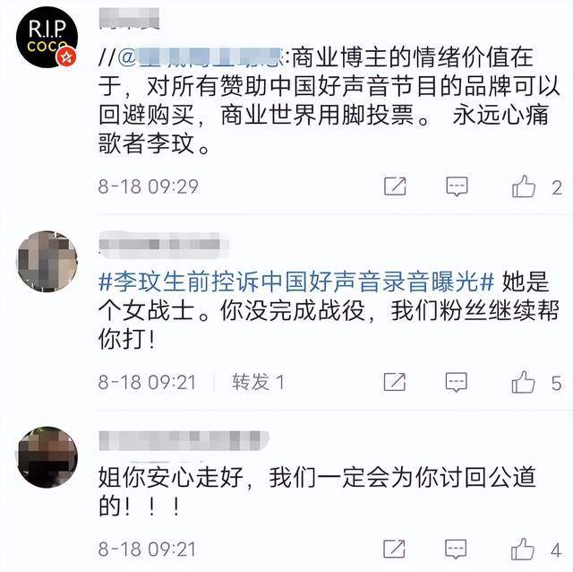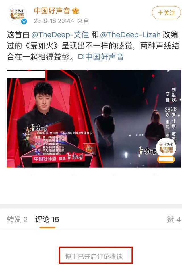 其次,《好声音》官博照常更新,一条又一条发布着最新节目内容,唯有隐藏了的评论区,能让人感受到些许抵制痕迹。