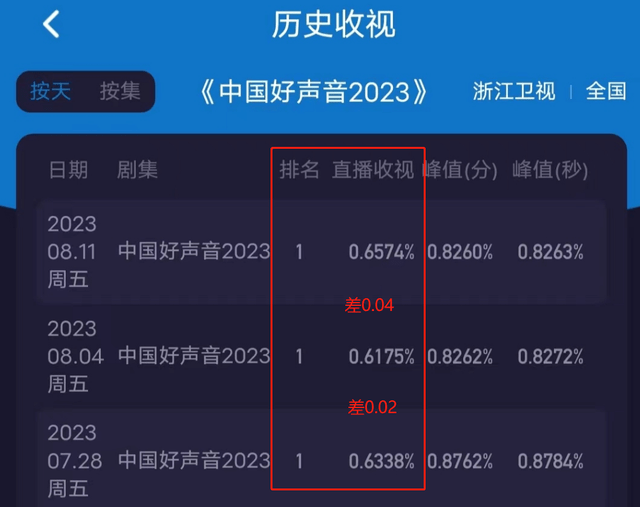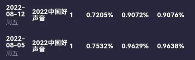 当然,《好声音》整体收视还是有波动的,对比上一期0.65%收视,最新一期《好声音》收视0.59%,对比上一期下跌了0.06%,不过就《好声音》往期收视率看,不到0.1%的波动数值属于正常范围,大概率与抵制无关,最新一期节目收视峰值甚至突破了0.72%。