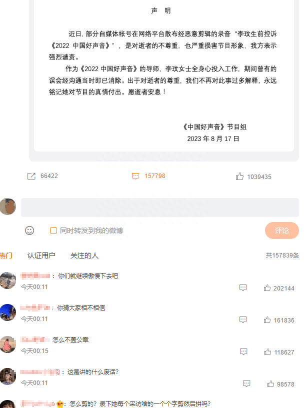 原标题:有反转?好声音学员为李玟发声后发文道歉,态度变化匪夷所思