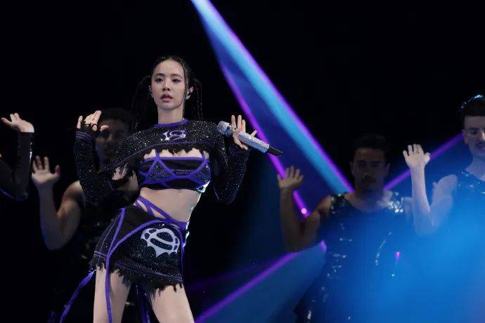 “旋转跳跃我闭着眼”赛博朋克感拉满的华丽舞台上蔡依林活力开唱,快乐因子传递到歌声所及的每一处。
