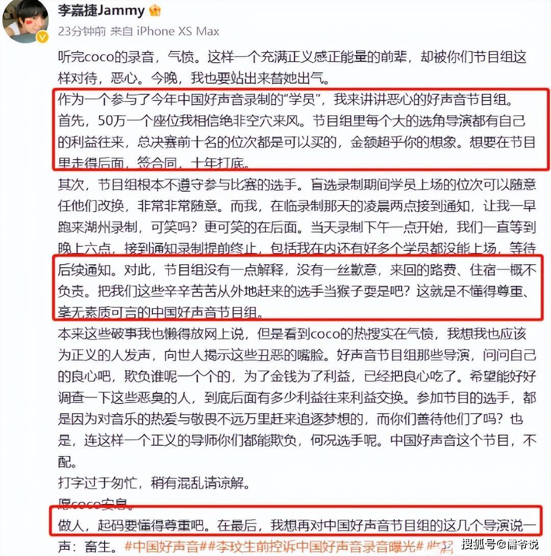 而在经过一晚的发酵后,李嘉捷突然改口,说那条控诉的微博没有事实依据,在此向社会各界及好声音节目组道歉,也让大家不要以讹传讹。这条道歉微博一出,人们纷纷让他保护好自己,毕竟懂的都懂,他这是遭遇了捂嘴。看来浙江卫视的能量确实很大,他们能逍遥快活这么多年却还没被查,果然是有点本事的。