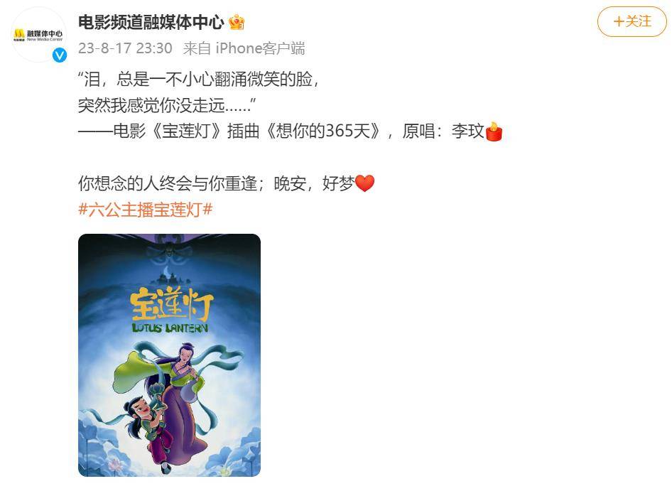 甚至六公主都看不下去了,直接深夜发博,排播《宝莲灯》怀念李玟。