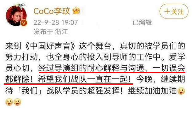 为了学员,李玟选择妥协。配合节目组在社交平台发文,称“一切误会都解除”,可在决赛舞台却遭遇了节目组的报复。