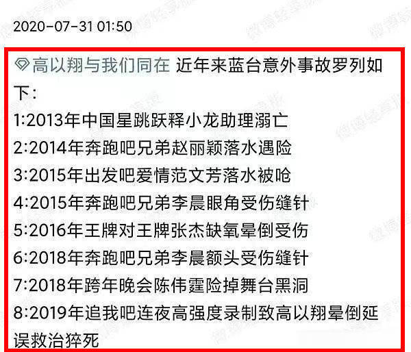 释小龙助理溺亡、赵丽颖落水遇险、范文芳落水被呛、李晨眼角受伤缝针、高以翔晕倒猝死……